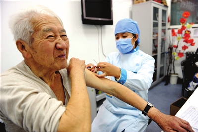 昨天(16日)是北京戶籍居民免費(fèi)接種甲型H1N1流感疫苗的第一天,截至昨天下午4時(shí)許,全市402個(gè)指定疫苗接種點(diǎn)共為9000余人接種此疫苗。多個(gè)接種點(diǎn)透露,首日接種者多數(shù)為老年人。