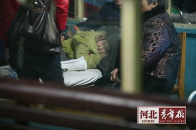 昨日18時(shí)許,記者在正定縣人民醫(yī)院急診部看到,仍然有一些食物中毒村民在接受治療。一位食物中毒村民表示,身體已無任何問題。在急診部門外停著一輛中巴車,一位村民稱,這是拉食物中毒康復(fù)村民回村的車。
