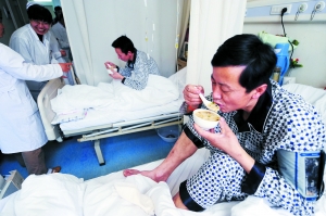 孫萍表示,病人的恢復(fù)進(jìn)程較快。6日,為了促進(jìn)消化,他們的食物以“湯水”等流質(zhì)為主;7日午飯時(shí),醫(yī)生就開始為部分病人喂食湯面等半流質(zhì)食物。為了增加營養(yǎng),加快身體恢復(fù),醫(yī)生對(duì)他們實(shí)行“一日七餐制”。
