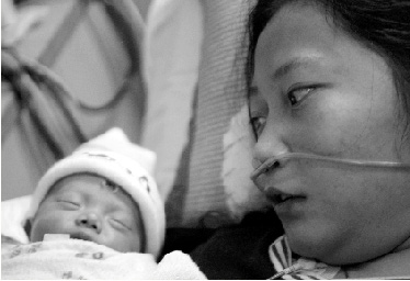 “寶寶,我是媽媽,是媽媽……”她不停地在寶寶的耳邊用微弱的聲音喚著懷里的寶寶,其實(shí)她多想寶寶能叫聲媽媽。寶寶躺在媽媽的懷里睡得很安心。一家人終于團(tuán)聚了,寶寶不知道是不是聽到了媽媽的呼喚,昨日才一個(gè)月的寶寶終于睜開了眼睛。