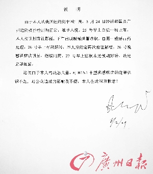 出院在即且不想被媒體打擾的“公眾人物”李某,留下一封信交付給醫(yī)院。昨日,記者從廣州市第八人民醫(yī)院獲取其寫給公眾的“說(shuō)明”。由于超過(guò)三天無(wú)癥狀且兩次檢測(cè)均為陰性,他已符合衛(wèi)生部出院標(biāo)準(zhǔn),其在醫(yī)生同意下,打算悄悄離院。