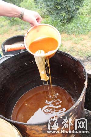 隨后,記者了解到,這個(gè)地溝油黑窩點(diǎn)隱藏在果園里已很久了,不過(guò)是斷斷續(xù)續(xù)在加工。
