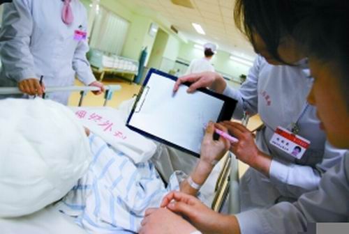 “從大年初六起,他就陸續(xù)在病歷卡上涂寫!弊蛉,該醫(yī)院神經(jīng)外科副主任醫(yī)師閆潤民回憶,趙某曾寫下自己的姓名,但只能辨認(rèn)出前兩字為“趙香”。