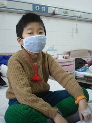 昨日下午3時,記者進(jìn)入軒軒的病房,見有人來,軒軒勉強(qiáng)地從病床上支撐著坐了起來,一副口罩掛在孩子稚嫩的臉上,將整個面部遮擋了大半部分,只是一雙雖受病痛折磨依然眼光堅(jiān)毅的眼睛露在了外面。萬玲告訴記者,這是因?yàn)榕录?xì)菌感染引起更糟糕的結(jié)果,所以遵醫(yī)囑戴起來的,每天只可以摘下一小會。小宇軒看到記者并沒有顯出害怕,但是虛弱的表情已經(jīng)寫在了臉上,孩子的身上開始出現(xiàn)很多的血印。一雙原來白嫩的小手已清晰可見蠟黃色了,手背上則是剛扎完針包著的紗布。