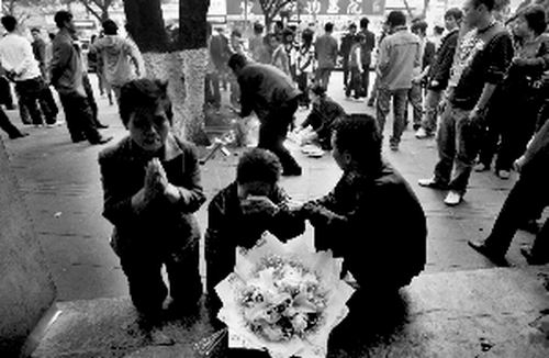 圍觀的群眾目擊老人悲傷,均嘆息照片中年輕人過早失去寶貴的生命。記者還發(fā)現(xiàn),隨家屬到場送別思偉的還有不少年輕男女。有穿黑色便裝的,也有穿學校服裝的。一名學生流著淚說,思偉是在市第四十九中畢業(yè)的,怎么也無法相信師兄已經(jīng)離開他們而去。