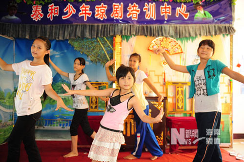 海南瓊海市退休教師王昱為傳承地方戲劇,用退休金義務創(chuàng)辦“泰和少年瓊劇培訓中心”。他的義舉得到社會各界的支持和幫助,開班兩年多來有近百位孩子前來培訓班學習,學員當中最大的15歲,最小的才4歲。參加培訓的孩子常被邀請到各地演出,精彩的表演受到戲迷們的歡迎。培訓班里的6名學員在一次全省瓊劇擂臺爭霸賽中,從1800名選手中脫穎而出,成功晉級50強,其中兩人晉級8強,10歲的符小玉憑借嫻熟的唱、念、做、打征服評委和觀眾,奪得大賽三等獎。(新華網(wǎng)/蒙鐘德 攝)