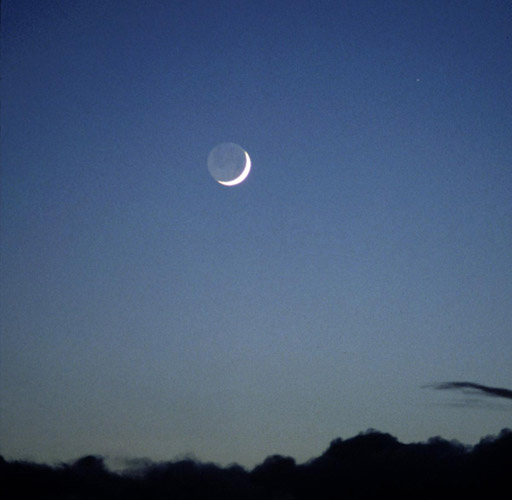 月球位于日、地之間時稱之為“朔”,月球暗的半個球朝向地球,我們看不到它;朔之后的一、二天,鐮刀狀的新月從西方的天空中出現(xiàn),當月球呈鐮刀狀出現(xiàn)在天邊的時候,我們能看到月球圓面的其余部分顯現(xiàn)微弱的光輝。這種光輝來自地球反射的太陽光,稱為“灰光”。地球能把入射陽光的40%反射出去,比月球反射光線的“能力”高得多,從而可以照亮月球,產生“灰光”。