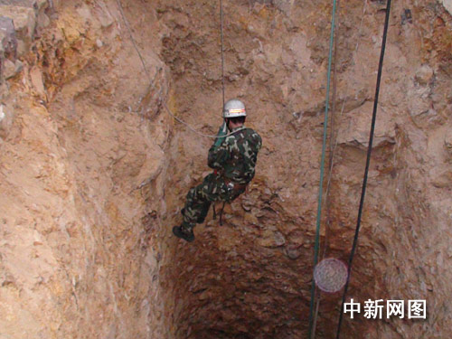 中新網(wǎng)登封1月16日電(記者 朱曉娟 李青娜)2009年1月15日下午16時28分,河南登封市君召鄉(xiāng)楊溝村一土坡上,四名工人在36米深的井底作業(yè)時,不幸井壁塌方,三人被困機井中,一人被活埋,情況萬分危機,消防官兵冒著零下6度的氣溫,經(jīng)過將近6個小時的努力,終將傷者救出。