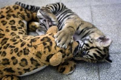 據(jù)臺灣東森新聞網(wǎng)報(bào)道,活蹦亂跳的小老虎不但會和小孩一起玩,還會把玩具豹玩得不亦樂乎。不過,可別看它一副自得其樂的樣子,其實(shí)小老虎有著非?蓱z的身世,因?yàn)槌錾攀斓乃,就不幸地被自己的親生母親拋棄。