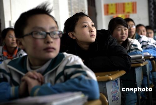 3月13日,借校于拉薩第三小學(xué)的拉薩二中學(xué)生正在專心聽課,同學(xué)們已經(jīng)從去年“3.14”事件的陰影中走出。去年“3.14”打砸搶燒事件時(shí)拉薩二中被暴徒嚴(yán)重沖擊,初一初二的兩所教學(xué)樓被全部燒毀,F(xiàn)在借校于拉薩第三小學(xué)上課的共有7個(gè)班級(jí)300多名學(xué)生。中新社發(fā) 劉震 攝
