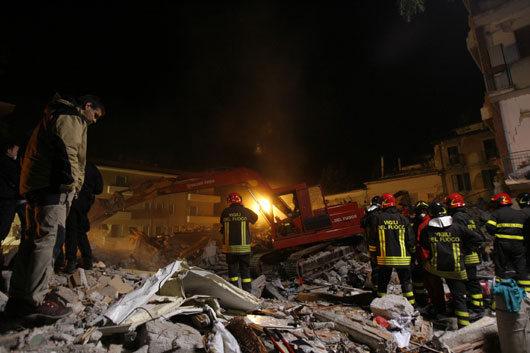 地震發(fā)生后,貝盧斯科尼取消原定訪問俄羅斯日程,宣布全國進入緊急狀態(tài),動員一切力量展開救援工作,并趕赴災區(qū)視察災情。