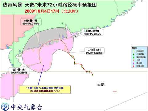 中央氣象臺2009年8月4日18時發(fā)布臺風(fēng)橙色警報: