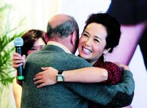 蔣雯麗本月雙喜臨門,剛憑借《立春》獲得金雞影后,其導(dǎo)演處女作《我們天上見》又在韓國釜山電影節(jié)上榮膺“最受觀眾喜愛電影大獎”。雙獎在手的蔣雯麗昨日偕《我們天上見》的主演朱旭等在京慶功,可惜慶功宴上丈夫顧長衛(wèi)姍姍來遲,活動已經(jīng)結(jié)束了才出現(xiàn),連話都沒來得及說上一句。
