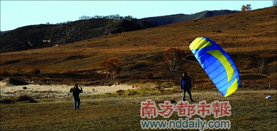 在草原上放風(fēng)箏實(shí)在是一件超爽的事。風(fēng)很大,稍稍跑一跑,風(fēng)箏就直飛上天了。但要注意的是重心必須比平時(shí)下沉,因?yàn)轱L(fēng)實(shí)在太大了,有把人吹走的嫌疑。同行有位肥佬一開始掌握不了要領(lǐng),一下了摔倒在地上,呈現(xiàn)一個(gè)大大的“S”形,被大家取笑為“芙蓉姐姐”。