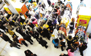 記者了解到,去年元旦北京百貨商場銷售增長20%多,今年受金融危機等因素影響增幅有所下降。今年元旦期間,北京商場都加大了折扣促銷力度,服裝普遍在6折以下。記者前日在甘家口商場看到,全場商品都在進行滿99減50的活動,耐克、衣戀等平日里很少打折的品牌專賣店內(nèi),擠滿了消費者。耐克專區(qū)的相關(guān)負責(zé)人告訴記者,“往常只有在折扣店才有對折的優(yōu)惠,今年是頭一次”。另外,中關(guān)村購物廣場等商場的化妝品也參與了商場“滿減”活動。