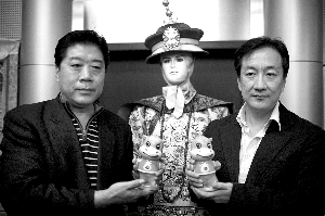 兩位草根皇帝李少華(左)和張濤(右)在展示地壇廟會(huì)的吉祥物。昨日,地壇廟會(huì)組委會(huì)宣布,老北京叫賣將首次進(jìn)駐地壇春節(jié)廟會(huì),并將為游客首次上演老北京叫賣情景劇。而地壇海選的新“皇帝”將于大年初一、初五扮演皇帝祭地。今年,地壇廟會(huì)在對(duì)小吃攤位進(jìn)行拍賣的同時(shí),還拿出五個(gè)位置絕佳的“黃金攤位”,請(qǐng)來了正宗“中華老字號(hào)”小吃的代表:東來順飯莊、白魁老號(hào)、護(hù)國(guó)寺小吃店、餛飩侯和茶湯李。(浦峰 李立強(qiáng) 攝影報(bào)道)