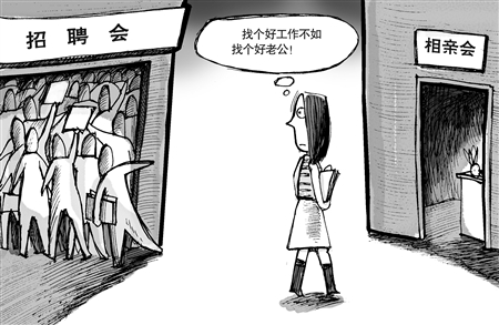 受金融危機影響,今年高校畢業(yè)生的就業(yè)壓力比較沉重,“男靠家,女靠嫁”、“找個好工作不如找個好老公”的觀念開始在高校部分女生中出現(xiàn),婚姻成為不少女生的另一條“退路”。在征婚時,有一定的經(jīng)濟基礎(chǔ)和穩(wěn)定收入成為她們的首要條件。