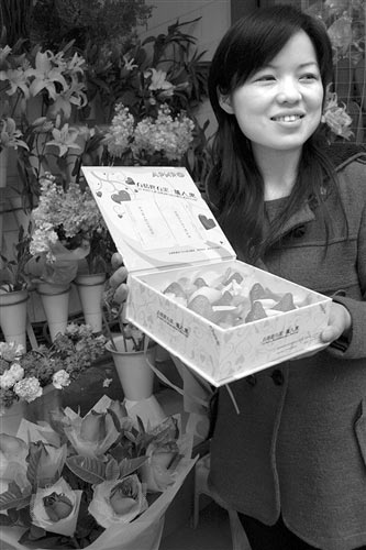 “99元9顆一盒的草莓,有點(diǎn)天方夜譚啰!”不到一會(huì),就有七八個(gè)市民圍觀看稀奇。楊先生是第一個(gè)站出來(lái)表示質(zhì)疑的市民。昨日上午,剛剛交下訂花的錢(qián)后,他就順手捧起一盒情人果仔細(xì)地看個(gè)究竟。不過(guò)頃刻之后,他很快放棄了購(gòu)買(mǎi)的沖動(dòng)。他告訴記者,自己畢竟是打工的,一個(gè)月就只有2000元錢(qián),情人節(jié)花100多元買(mǎi)束花就可以了,如果還要花這么貴的價(jià)錢(qián)買(mǎi)這虛浮的東西,還是有點(diǎn)不值。