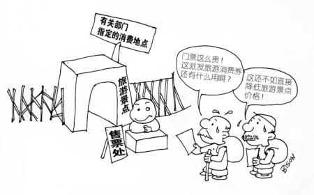 在叫好之前,筆者有一個(gè)疑問(wèn):若真有心刺激旅游消費(fèi),干嗎不把居高不下的旅游景點(diǎn)門票價(jià)格降下來(lái),反而采取這種與商家促銷打折無(wú)甚差別的方式?以廣州某旅行社派發(fā)的旅游券為例,除了年齡限制外,還有國(guó)內(nèi)游及國(guó)外游的限制,大家想想,人到了55歲以上,有誰(shuí)出游不攜家?guī)Э诘,以兩人為例,?guó)內(nèi)游基本得消費(fèi)5000元以上,發(fā)100元的旅游券,還不夠給導(dǎo)游小費(fèi)呢。