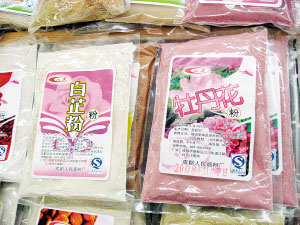 些敷臉的粉末不在護(hù)膚品分類中出現(xiàn),而是在超市的面粉區(qū)域銷售,也有近百種之多,將水果、蔬菜以及堅(jiān)果的提取物同面粉結(jié)合,這樣的粉可以用溫水調(diào)和,用小火或微波爐煮制食用,也可以加蛋清或蜂蜜敷臉,其實(shí)喜歡DIY面膜的女士們一定知道,用蛋黃混合面粉而成的面膜薄薄地涂在臉上,可滋潤(rùn)皮膚。只不過現(xiàn)在我們食用的面粉可以用這些特殊的面粉代替了,會(huì)有更多的功效在里面,比如美白、抗敏、排毒等功效。可選擇的有杏仁粉、枸杞粉、玫瑰花粉、苦瓜粉、淮山粉、薏仁粉、檸檬粉、蘆薈粉、白芷粉、紅豆粉、綠豆粉、杜鵑花粉、黑木耳粉、荷葉粉等等。70克一小袋兒要花費(fèi)近17元,顯然敷臉比食用更劃算些。(文/攝 孫小雅)