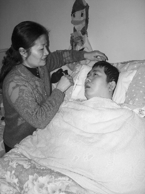 吳磊的昏迷狀況一直持續(xù)到現(xiàn)在,昨天,當(dāng)《生活常州》來到孟湘芳家中時(shí),吳磊仍躺在床上,除了眼睛會(huì)睜開,頭會(huì)轉(zhuǎn)動(dòng)外,吳磊的手腳依然僵硬萎縮,其實(shí)仍然是一個(gè)無意識(shí)無語言的植物人。