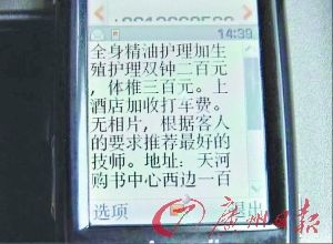 阿海以廣告客戶的身份,致電該網(wǎng)站廣告聯(lián)系人,詢問如何在該網(wǎng)站上發(fā)布“會所”的廣告。網(wǎng)站工作人員透露,廣州本地店面的廣告價(jià)格是6000元3個月,而周邊其他城市的價(jià)格是3000元3個月,只接受3個月或以上的訂單。這位工作人員表示,網(wǎng)站的廣告效益面很廣,如果是廣州的店面,在網(wǎng)站上登出的廣告,每天都會有一千次左右的點(diǎn)擊量,會有“做不完的生意”。