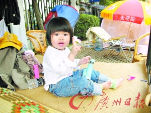 梁女士說,為了兩歲半的小女兒能夠順利入讀,她早早就來到幼兒園門外,扎起小帳篷,開始了長達(dá)7天的守候,現(xiàn)在已經(jīng)守了5天了。雖然很辛苦,但梁女士認(rèn)為,只要為了孩子,付出都是值得的。梁女士還告訴記者,她碰到一位“80后”的媽媽說,“只要孩子能上好學(xué)校,別說一星期,我就是排一個(gè)月隊(duì)也值了!