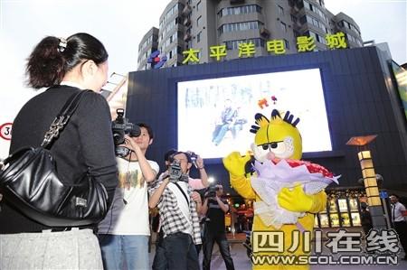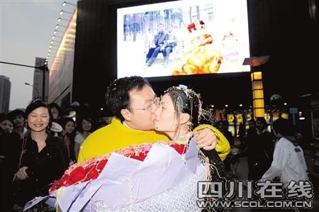 昨晚7點(diǎn),應(yīng)男友的邀請(qǐng),鄭小姐來(lái)到成都春熙路商圈的青年路太平洋影城準(zhǔn)備和男友一起看電影。剛走到影城門(mén)口,鄭小姐突然發(fā)現(xiàn):影城門(mén)口的大屏幕上,居然正在播放由自己和男友平時(shí)照片所組成的短片。沒(méi)等鄭小姐回過(guò)神來(lái),身穿加菲貓?jiān)煨头b的男友周先生已捧著大束玫瑰走上前來(lái),單膝跪地:“嫁給我吧。”