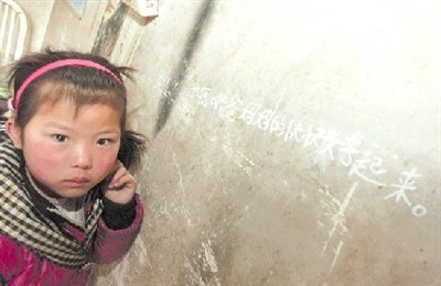 問起夢麗有啥心愿,她沒有直接回答,而是拿起半截粉筆在墻上寫著“我愿叫爸爸媽媽的病快快好起來”。在一側(cè),她又寫下:“哥哥,你回來吧,爸爸媽媽有病了!”鄰居黃姣妞說,好幾次,沈保利和親戚去醫(yī)院看謝建國,謝夢麗自己一人待在大門口,幾次都等到深夜。“她可堅強(qiáng)了,從5歲上幼兒園到現(xiàn)在,她都是一人去學(xué)校,不讓送。好幾次都是鄰居給她送點飯,她是吃百家飯長大的!