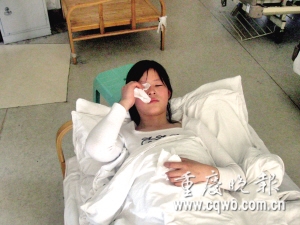 來自西南醫(yī)院 8年沒得到母愛的隆臘梅,此次被查出先天性心臟病,急需手術(shù)。因手術(shù)風(fēng)險(xiǎn)大,臘梅想在手術(shù)前讓媽媽抱抱。昨日,西南醫(yī)院內(nèi)科7樓42床,隆臘梅哭著告訴記者:“哪怕媽媽來看一眼,我也會從容面對手術(shù)!