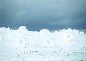 據(jù)當?shù)孛襟w20日報道,美國一名消防員在今年3月底拍攝到一種罕見的自熱現(xiàn)象“雪卷”,并在最近將照片公之于眾。從照片上看,這些“雪卷”類似一個個雪做的席子,卷成一團,在荒蕪人煙的草原上安靜地佇立。