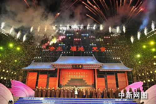 晚會由湖南衛(wèi)視著名主持人楊樂樂主持。海內(nèi)外高僧大德云集于此。香港著名歌手梁詠琪為活動獻唱了兩首耳熟能詳?shù)母枨抖Y物》和《愛得起》。臺灣佛樂天后齊豫演唱了佛曲《船歌》。內(nèi)地新生代歌手薩頂頂、《西游記》唐僧扮演者徐少華、香港Byond樂隊成員葉世榮登臺獻藝。