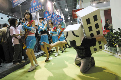 sangangang:重慶的房交會很少看到這樣的行為藝術,有創(chuàng)意!