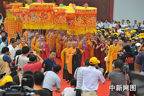 中新網(wǎng)4月28日電 近日,海南省澄邁縣千年古剎永慶寺,第七屆盈濱龍水節(jié)暨永慶寺開(kāi)光法會(huì)在此舉行。海內(nèi)外53位高僧大德聯(lián)袂開(kāi)光。海南省政協(xié)主席鐘文,省委常委、省委秘書(shū)長(zhǎng)許俊,副省長(zhǎng)符躍蘭,中國(guó)佛教協(xié)會(huì)、山西省有關(guān)領(lǐng)導(dǎo)以及主辦方代表山東魯能集團(tuán)有限公司副總裁趙健一行、澄邁縣委、縣政府領(lǐng)導(dǎo)與數(shù)萬(wàn)信眾居士共同見(jiàn)證了這一佛門(mén)盛事。