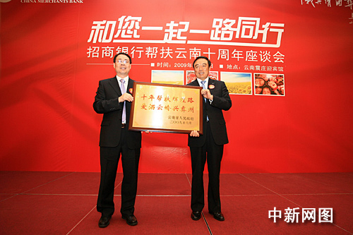 中新網(wǎng)6月24日電 昨日,招商銀行幫扶云南十周年座談會(huì)在云南昆明召開。云南省副省長曹建方、國務(wù)院扶貧辦國際合作與社會(huì)扶貧司司長張磊、國務(wù)院扶貧辦國際合作與社會(huì)扶貧司副司長劉春良、招商銀行行長馬蔚華等領(lǐng)導(dǎo)應(yīng)邀出席了座談會(huì)。