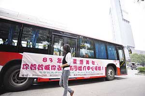 “83年后素質(zhì)美女,你媽喊你去心雨園婚介中心征婚”!昨日上午,南京鼓樓廣場前,一輛公交車帶著兩側(cè)的“雷人”橫幅,緩緩駛過,吸引了眾多市民觀看。