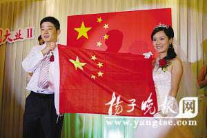 新娘柳燕告訴記者:“我們前陣子一同去北京看升旗儀式和閱兵式排練,現(xiàn)場那種莊嚴(yán)和隆重的氣氛嚴(yán)重感染了我們,當(dāng)時突然有了靈感。今年是新中國成立六十周年紀(jì)念,又是我們小家正式成立之時,有大國才有小家,為什么不做一個國慶為主題的婚禮呢?”