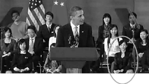 不久前,奧巴馬剛剛結(jié)束訪華,此行不僅讓奧巴馬成為各大媒體關(guān)注的焦點(diǎn),同時(shí)也使一位神秘女子成為網(wǎng)絡(luò)紅人。11月16日在上?萍拣^會(huì)場,出現(xiàn)在奧巴馬身后的一名黑衣女子被攝入媒體鏡頭中,其亮麗的外形、獨(dú)特的氣質(zhì)吸引了眾多網(wǎng)民的眼球,網(wǎng)友迅速展開對女孩的“人肉搜索”。范冰冰親戚?楊瀾侄女?或者又是一場炒作?種種未經(jīng)確定的猜測充斥著各大論壇,也為黑衣女孩的身份蒙上了一層神秘的面紗。