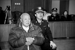 昨天上午,李某在女兒、女婿和兒媳婦的陪伴下,拄著拐杖走進法庭(如圖)。“我對不起被害人。我接受改造,從新做人!遍_庭后,他點頭承認了公訴機關的指控。