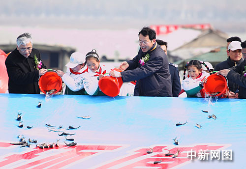 中新網(wǎng)宿遷3月10日電 (蔡云海 周翔 朱曉穎)9日,江蘇宿遷在洋河灘漁港啟動(dòng)首屆駱馬湖放魚(yú)節(jié)儀式、放魚(yú)節(jié)歷時(shí)3天。“江蘇省駱馬湖漁政搜救中心”、“江蘇省駱馬湖漁業(yè)濕地管護(hù)站”同時(shí)揭牌。