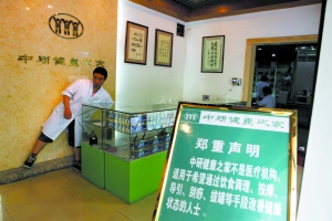 5月20日,中國中醫(yī)科學(xué)院東側(cè),中研健康之家內(nèi)掛著一個牌匾,上面寫著“中研健康之家不是醫(yī)療機構(gòu),適用于希望通過飲食調(diào)理、按摩、導(dǎo)引、刮痧、拔罐等手段改善健康狀態(tài)的人士!