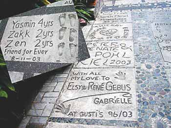 享有“人間天堂”美譽的印尼巴厘島上也有一條“星光大道”,不過和美國好萊塢的不同,這里的印模并非出自國際巨星,而是來自世界各地最普通的游客,只要掏出點錢,就能像明星一樣“青磚留名”。