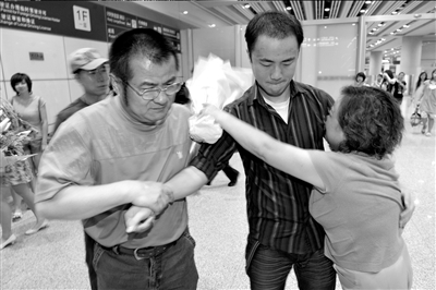 據(jù)翟泰山的朋友介紹,由于翟田田是被直接送上飛機(jī)的,美國(guó)的朋友為其準(zhǔn)備的新衣尚未來(lái)得及換上,身上穿的仍然是他入獄時(shí)穿的衣服。走出出站口后,翟田田的家人立即帶他去更換一件黃色的新衣,這時(shí)翟泰山默默地走在他身后,止不住地哭泣。換好新衣后,他右手擁著父親并肩向外走去,兩人微笑交談,翟田田還在父親的臉頰上親了一口。