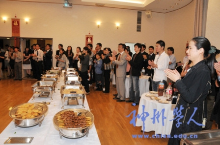 招待會上,留學(xué)人員載歌載舞表達(dá)著對祖國的祝福,每個(gè)人都沉浸在國慶佳節(jié)的氣氛中,大家品嘗著美味佳肴,談?wù)撝鎳陌l(fā)展變化,構(gòu)思著自己的美好未來。祖國的明天更美好——這是大家共同的心愿。
