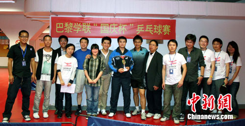 中新網(wǎng)巴黎10月3日電(尹娜)為慶祝中華人民共和國(guó)成立61周年,法國(guó)巴黎學(xué)聯(lián)于3日在當(dāng)?shù)谹SPN乒乓球俱樂(lè)部舉行了“國(guó)慶杯”乒乓球邀請(qǐng)賽。