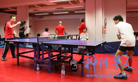 參賽的隊伍除了代表留法學子的學聯(lián)代表隊、學者隊,還有使館老師們組成的使館隊和代表華僑的嶺南隊,以及由3位留法學者子女組成的“希望隊”。本次比賽將參賽隊伍分為8個分隊,以小組循環(huán)賽方式晉級。早上9:30分,32位參賽隊員已經(jīng)開始練球熱身,安靜的球館頓時變得熱鬧起來。