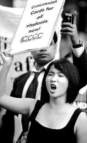 9月2日,來(lái)自中國(guó)、印度等10多個(gè)國(guó)家的近千名外國(guó)留學(xué)生聚集在澳大利亞悉尼科技大學(xué)門(mén)前,開(kāi)始了他們?yōu)闋?zhēng)取合法權(quán)益而舉行的大游行。游行的直接原因是交通優(yōu)惠卡問(wèn)題———在留學(xué)生最多的新南威爾士州和維多利亞州,只有澳大利亞本地學(xué)生才能獲得交通優(yōu)惠卡,享受乘坐汽車(chē)、火車(chē)5折的待遇。但是,留學(xué)生們的不滿并不是小小的優(yōu)惠卡這么簡(jiǎn)單。