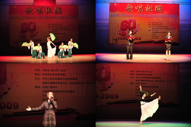 隨后,同學(xué)們圍繞“歌唱祖國(guó),用歌聲為祖國(guó)生日獻(xiàn)禮”的主題,表演了豐富多彩的文藝節(jié)目。開(kāi)場(chǎng)團(tuán)體舞蹈《春天的故事》造型優(yōu)美,歌曲《我和我的祖國(guó)》傾注了年輕海外學(xué)子對(duì)祖國(guó)母親的款款深情,歌聲嘹亮,獨(dú)舞《征途》英姿颯爽,獨(dú)唱《再見(jiàn)瀏陽(yáng)河》優(yōu)美動(dòng)聽(tīng)。此外,二胡演奏、詩(shī)歌朗誦、鋼琴獨(dú)奏、小提琴演奏和獨(dú)具特色的中國(guó)旗袍時(shí)裝秀等表演贏(yíng)得了全場(chǎng)觀(guān)眾的喝彩。雖然這次參加演出的絕大多數(shù)是80后、90后的年輕學(xué)生,但每一個(gè)節(jié)目都經(jīng)過(guò)了精心準(zhǔn)備和反復(fù)排練,每一個(gè)表演都展現(xiàn)了同學(xué)們對(duì)祖國(guó)60華誕的喜悅和自豪。形式多樣、異彩紛呈的演出博得滿(mǎn)場(chǎng)觀(guān)眾一陣又一陣熱烈的掌聲和歡呼聲。