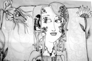與過去不同的是,她的馬不僅獨立自主地存在,而且開始無處不在。它們?nèi)谌胨摹吧倥毙徒M畫中,即使是她的“蒙娜麗莎”和“蝴蝶世界”組畫,馬的形象也被穿插在發(fā)型、衣飾和風景背景中。幾年來她畫了上千匹馬和300多位創(chuàng)意少女的形象,她又在考慮,如何將自己設(shè)計的各種形象成為應(yīng)用藝術(shù)。在那次聯(lián)合畫展上,她的畫是不出售的,而她制作的藝術(shù)賀卡卻很受歡迎。