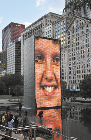 從嚴(yán)肅到微笑,“皇冠噴泉”上映射出的一個個臉孔,是最真實的芝加哥面容。它跨越種族、年齡、身份和性別,是芝加哥多元化最生動的體現(xiàn)。
